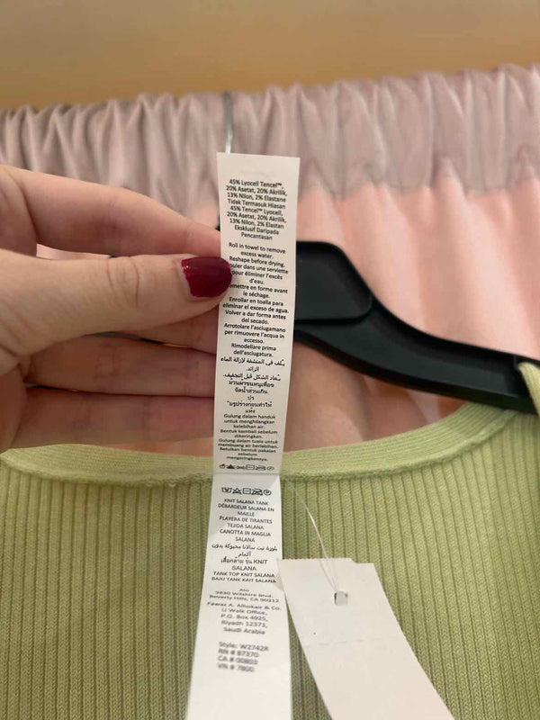 The lime hue of the Alo Yoga Lime Size XS Tank Top brings a fresh and vibrant touch to any women’s consignment fashion collection. Crafted with a ribbed blend fabric, this pre-loved designer piece features a flattering v-neck and a distinctive silver clasp at the center of the bust, enhancing its tailored silhouette. As part of our authentic luxury resale offerings, this tank top from Alo Yoga is a unique find for those seeking quality and style in size XS. Carefully curated and ready for a new chapter, it’s located in Baton Rouge for convenient access.