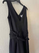sleeveless,v neck,solid black,Siena belted crepe jumpsuit,back zip closure,removeable waist belt,on seam pockets