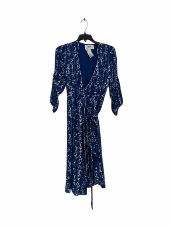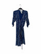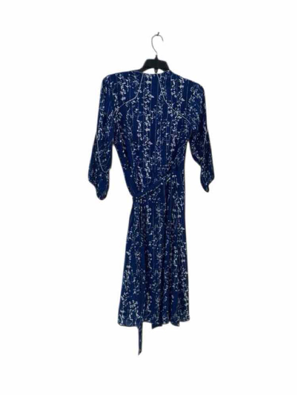 RP1* mini dress, long sleeves, tie up dress, white flowery designs throughout, blue base color, flowy fit (7/14/25,105)