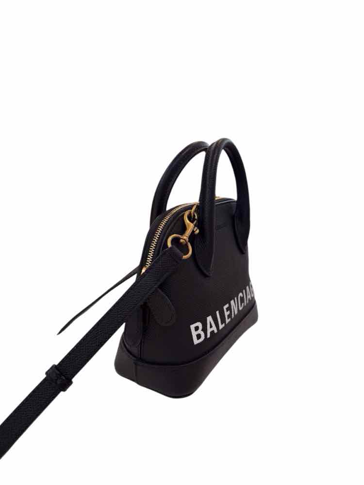 The black and white palette of the Balenciaga grained calfskin ville top handle b Black and white Handbag brings a refined, modern touch to any wardrobe. Showcasing the iconic Balenciaga logo in crisp white across the front, this pre-loved designer accessory blends chic style and versatility. Authentic luxury resale meets women's consignment fashion in this small top handle bag, which features both a classic handle and a convenient shoulder strap. Thoughtfully curated in excellent condition and accompanied by its original dustbag, this piece offers a timeless way to refresh your collection with a distinctive Balenciaga design.