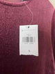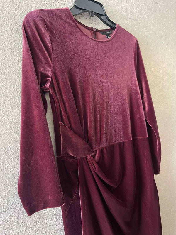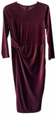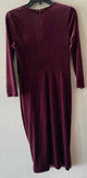 NWT,long sleeve,mock neck,solid plum velvet midi dress,ruched gathering on side of waist,back zip,ruched drape overlay
