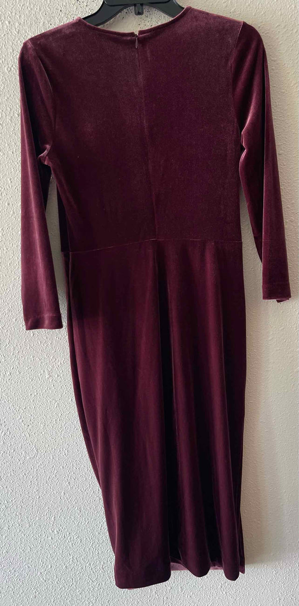 Crafted from luxurious plum velvet, the Banana Republic Plum Size 6 Dress is an exceptional find in authentic luxury resale. This pre-loved designer piece features a long sleeve midi silhouette with a refined mock neck, ruched gathering at the waist, and a draped overlay for added visual interest. Finished with a sleek back zip, this women's consignment fashion treasure is still new with tags, reflecting both quality and contemporary style. Discover a unique addition to your wardrobe with this beautiful dress—carefully curated for those who appreciate distinctive designer details and timeless appeal.