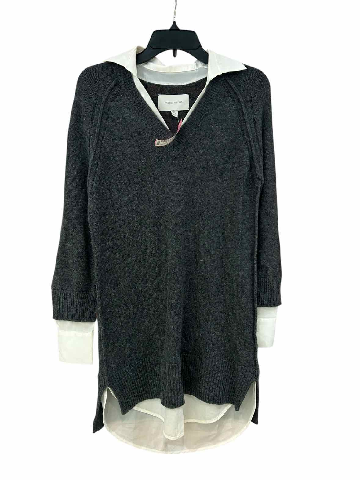 The color combination of the Brochu Walker Grey and white Size XS Dress brings a refined touch to any women's consignment fashion collection. This pre-loved designer piece features a grey long sleeve v-neck design, complemented by a white collared and layered detail that extends longer in the back for an elegant silhouette. Crafted from a luxurious wool and cashmere blend, this authentic luxury resale dress is ideal for those seeking both comfort and distinctive style. Discover how the unique layering and classic color palette can refresh your wardrobe with a touch of Brochu Walker’s timeless appeal.
