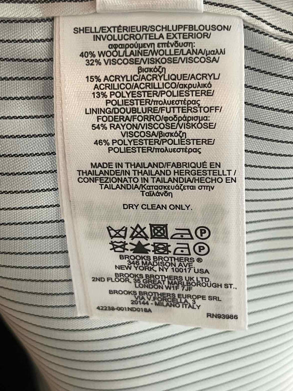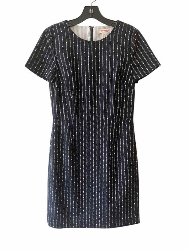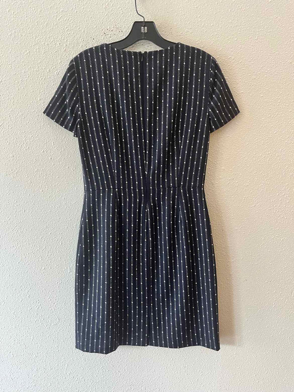 The color and pattern of this Brooks Brothers Navy and White Size 2 Dress offer a fresh take on authentic luxury resale. A striking navy backdrop is adorned with a white embroidered diamond and diagonal dash design, creating a unique visual texture throughout. This pre-loved designer piece, available through women’s consignment fashion, features a classic short sleeve silhouette, jewel neckline, and a tailored wool blend fabric that speaks to refined taste. The back zip closure ensures a polished finish, while its excellent condition promises lasting appeal for any wardrobe. Experience the timeless look and quality that Brooks Brothers is renowned for.