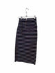 midi length, navy blue and white striped throughout, 4 zippers in front, gold hardware,