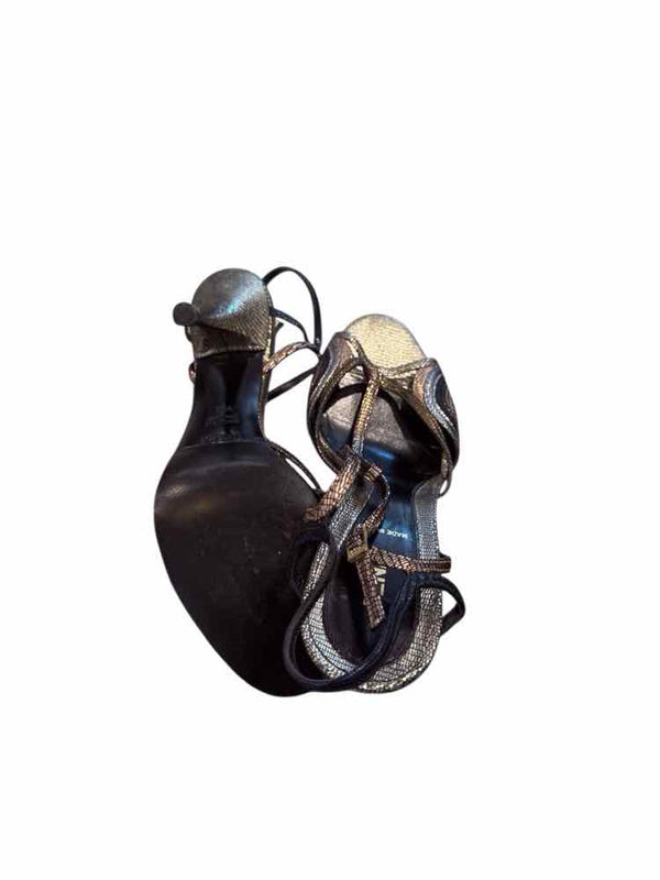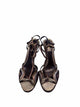 PA* for vintage, peep toe sandal heels, metallic, ankle strap, t-strap