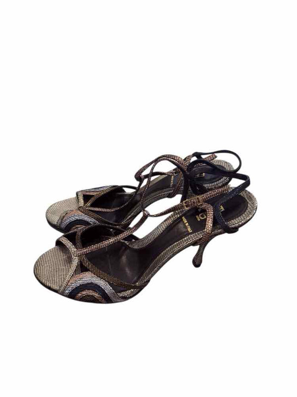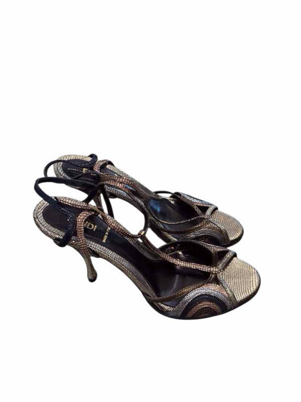 The silver hue of these Fendi Silver Size 39.5 Shoes brings a touch of polished glamour to any women’s consignment fashion collection. These pre-loved designer heels feature a vintage-inspired peep toe, metallic finish, and elegant ankle and t-strap details, making them a beautiful choice for those seeking authentic luxury resale. Presented in very good condition, each pair is carefully curated to meet the standards of discerning shoppers. Enjoy the opportunity to refresh your wardrobe with designer footwear that celebrates timeless style and craftsmanship, all from an exclusive selection of authentic Fendi pieces.