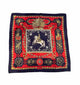 hermes knight scarf, LVDOVICVS MAGNVS, red, navy blue, gold, white horse with knight