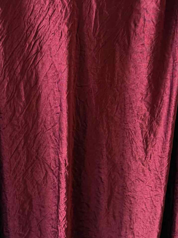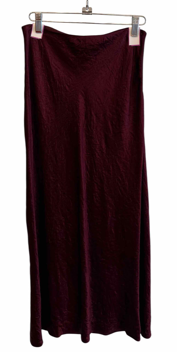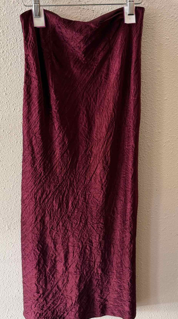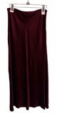 high rise,below knee,solid wine,crinkle satin midi skirt,ribbon waistband with side zip closure