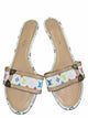 , Classic Louis Vuitton Monogram Multicolor Kitten Heel Sandals, gold hardware, tan insole, open toe, slip on,