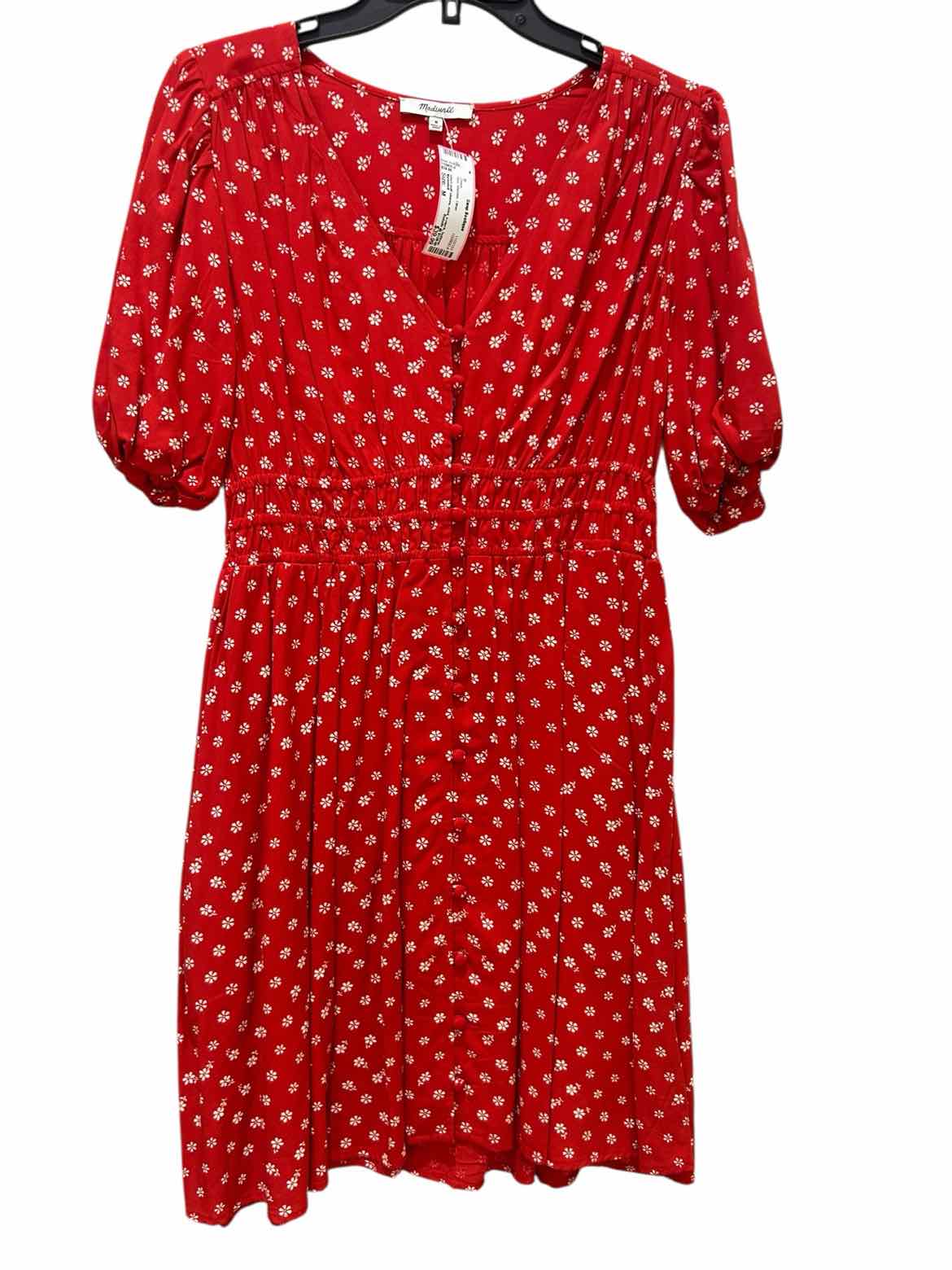 The vibrant red hue of the Madewell Red Size M Dress brings new energy to any women's consignment fashion collection. Designed in soft viscose, this pre-loved designer mini dress features short puff sleeves, a flattering v-neck, and a row of buttons up the front for classic appeal. A shirred elastic waist ensures a comfortable, tailored fit, making it a versatile addition from authentic luxury resale. Whether you're looking to refresh your wardrobe with a chic mini silhouette or searching for a special pre-owned find, this Madewell dress captures refined style and timeless charm.
