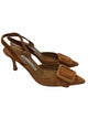suede pumps, solid brown, closed toe, pointed toe, has slingback, slight small heel