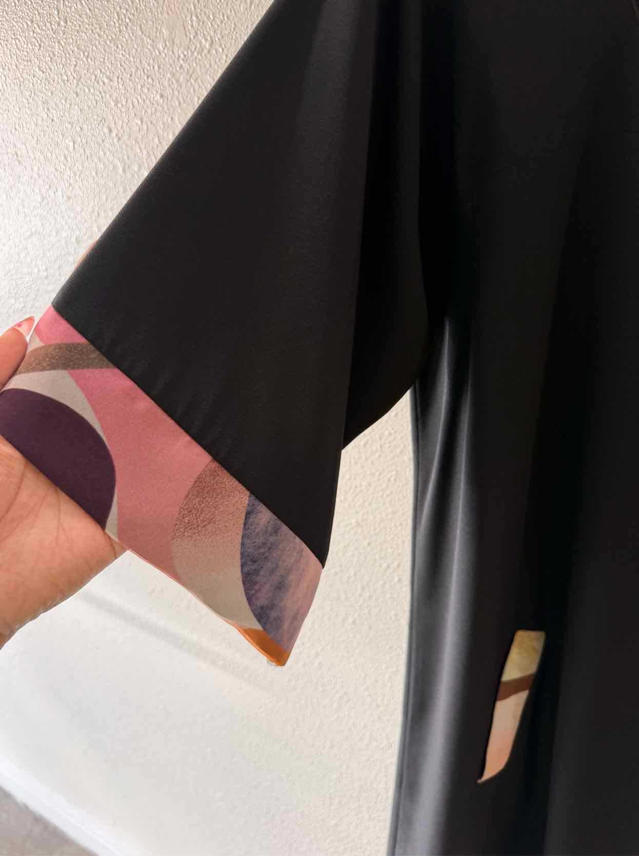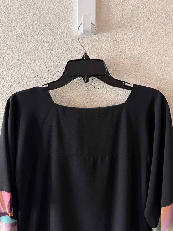 Featuring a sleek sheath silhouette, the Matthew Williamson Black Multi Size No Label Dress brings refined polish to authentic luxury resale. This pre-loved designer dress has quarter sleeves, a square neck, and an above-knee length that works seamlessly into women's consignment fashion collections. Abstract print trim adds a distinctive touch, complemented by contrast cuff sleeves and contrast trim slit pockets. Lined for added comfort and structure, it comes in Black Multi with a fabric and size noted as no label, and is rated in Very Good condition. A chic option for those seeking curated, pre-owned designer style.