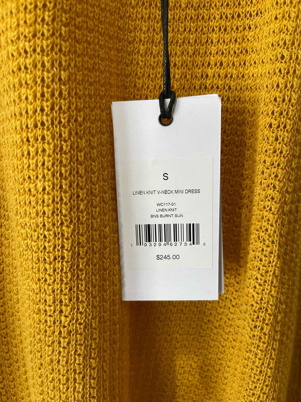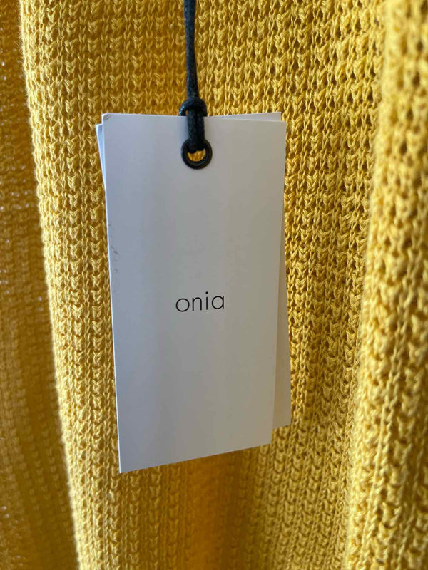 The rich mustard hue of the Onia Mustard Size S Dress brings a refreshing burst of warmth to any designer wardrobe. This pre-loved designer piece, available through authentic luxury resale, features a lightweight crochet knit linen construction for breathable comfort. Its sleeveless silhouette, delicate spaghetti straps, and soft v-neck create a modern, feminine look, while the ribbed hem adds a touch of texture. As part of our curated women's consignment fashion collection, this mini dress arrives new with tags, offering a unique blend of style and quality for the discerning shopper.