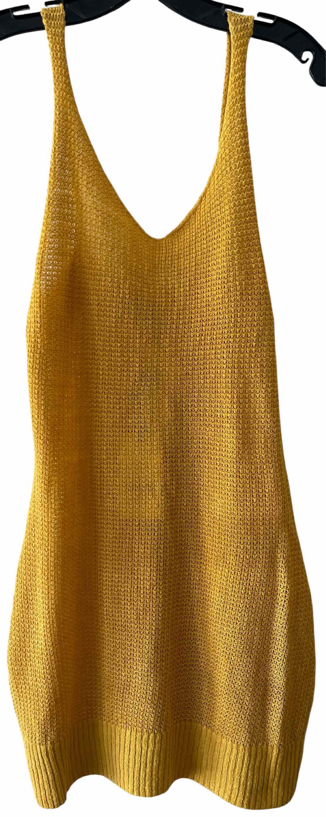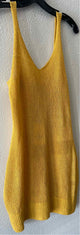 NWT,sleeveless,spaghetti strap,soft v neck,solid mustard lightweight crochet knit linen bodycon mini dress,ribbed hem