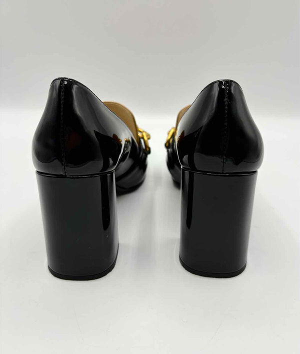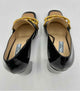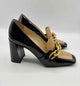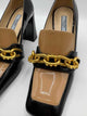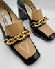 Price adjust for smudge* Color block, beige and black, squared toe, chunky block loafer chain heels, spiked chain across foot
