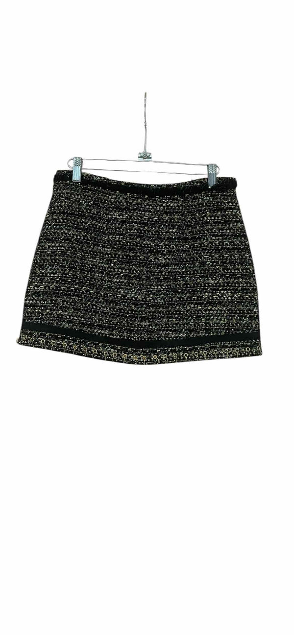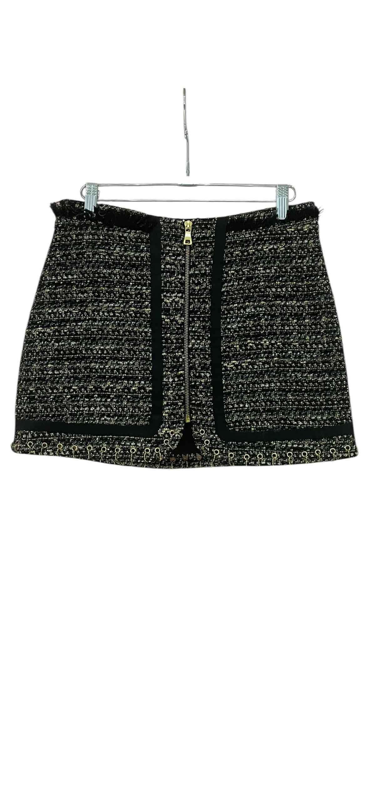 The gold and black hues of this pre-loved designer Ramy Brook Gold and Black Size 0 Skirt create a distinctive look for modern women's consignment fashion. Featuring a striking mini silhouette, this authentic luxury resale piece highlights a front gold zipper and eye-catching gold hardware along the hem. The tweed fabric, black lining, and gold accent details are enhanced by a frayed design, offering both texture and visual interest. With its tailored size 0 fit, this skirt embodies the refined style expected from Ramy Brook while providing a special opportunity to refresh your wardrobe with sustainable elegance.