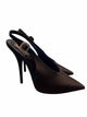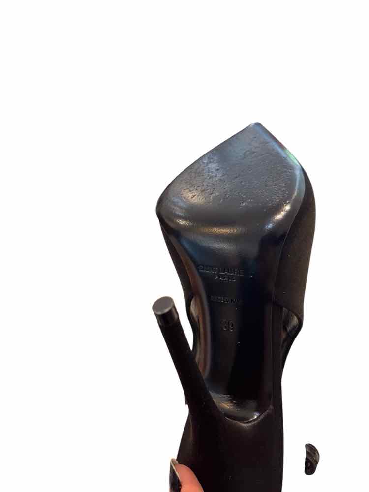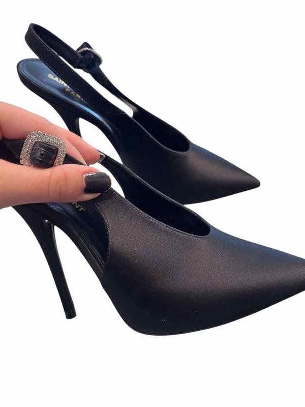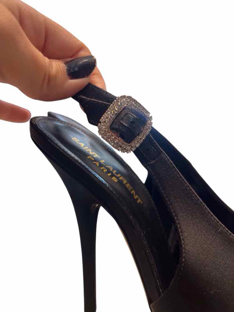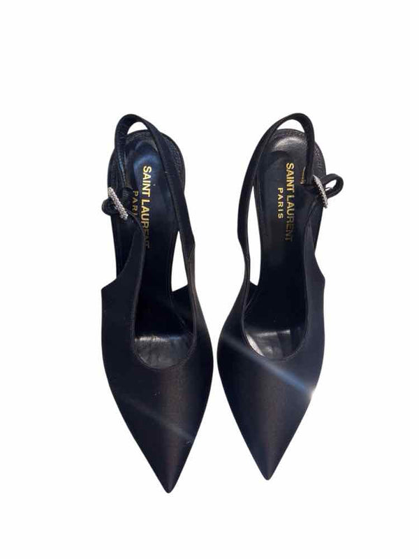 Featuring a timeless pointed toe silhouette, the Saint Laurent Black Size 39 Shoes blend elegant satin with an eye-catching rhinestoned buckle for a refined finish. Offered through women’s consignment fashion, this pre-loved designer pair highlights the quality and allure of authentic luxury resale. The classic black hue and slingback style make them a versatile addition to any collection. Carefully maintained in very good condition, these shoes offer a distinctive way to refresh your wardrobe with Saint Laurent’s signature craftsmanship.