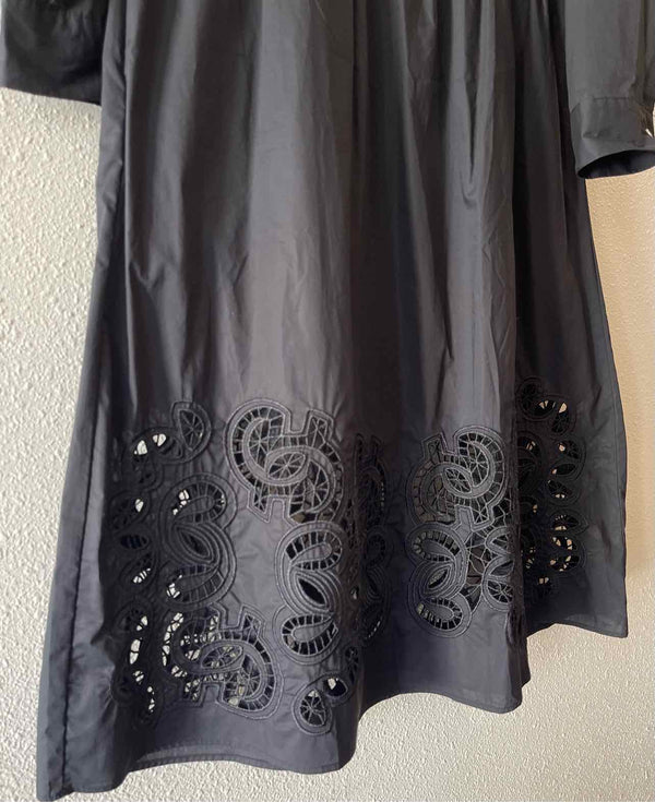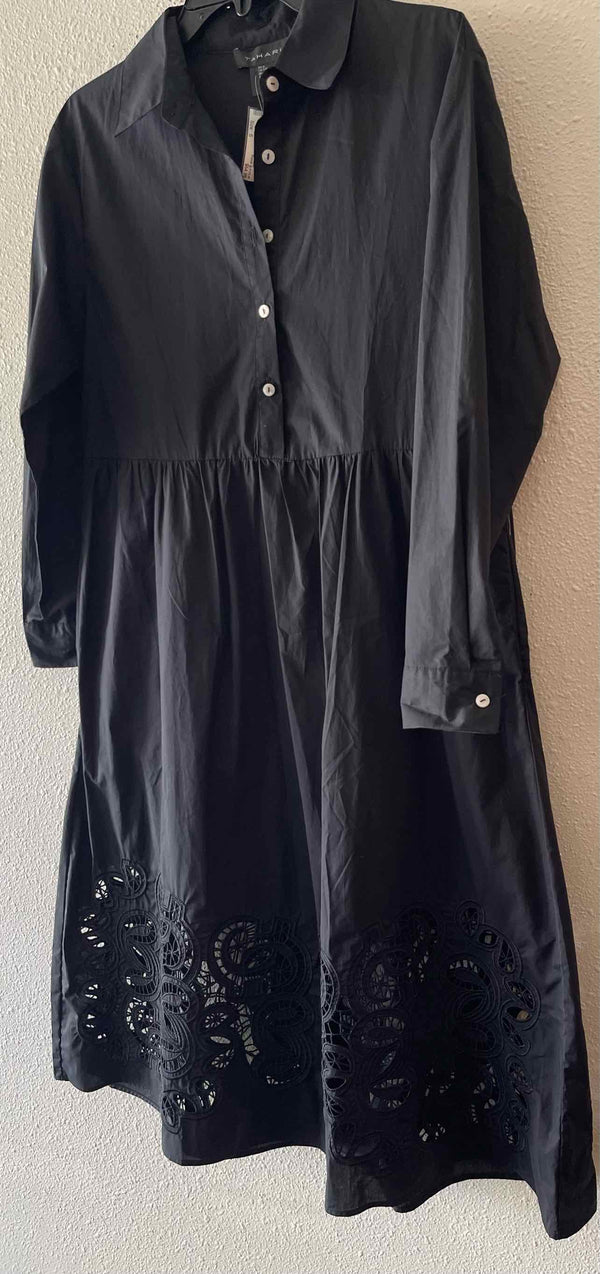 The black hue of the Tahari Black Size S Dress brings timeless elegance to any curated wardrobe. Offered through authentic luxury resale, this pre-loved designer piece features a refined fit and flare silhouette and quarter button-down design. The collared neckline, long sleeves with button cuffs, and removable adjustable belt offer a polished look, while the filigree crochet eyelet embroidered bottom adds a distinctive touch. Experience the best in women’s consignment fashion with a dress that blends classic style and beautiful detailing, and arrives new with tags for exceptional quality.