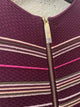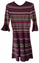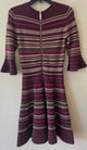 NWT,quarter sleeve,crew neck,below knee,plum multi,Ottoman stripe lurex blend knit dress,back exposed zip closure,bell cuff sleeve,fit flare hem